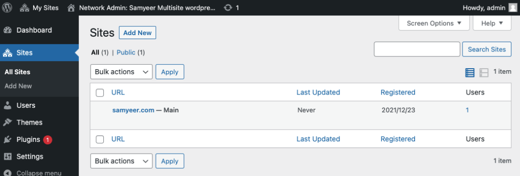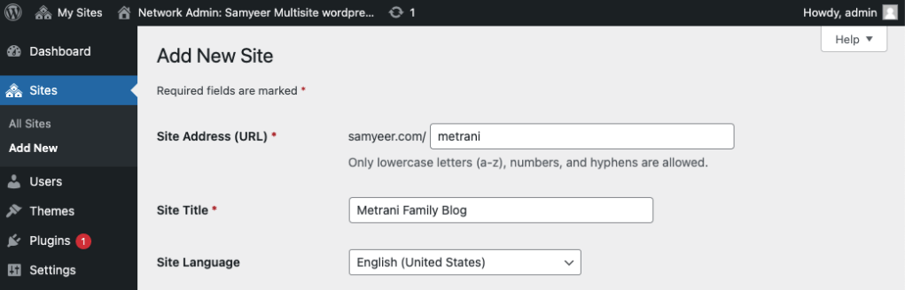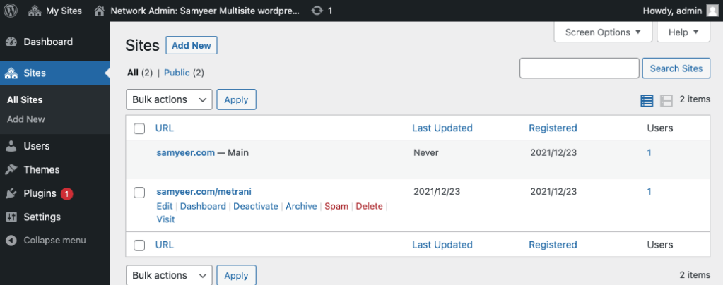 Click on “Edit” for the new site you setup (in my case samyeer.com/metrani.