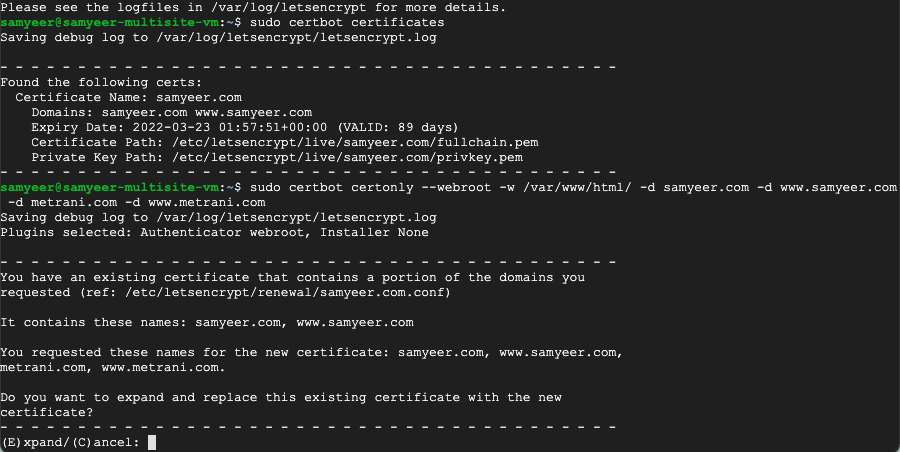 I am going to go through adding a new site (and updating HTTPS for that new site).