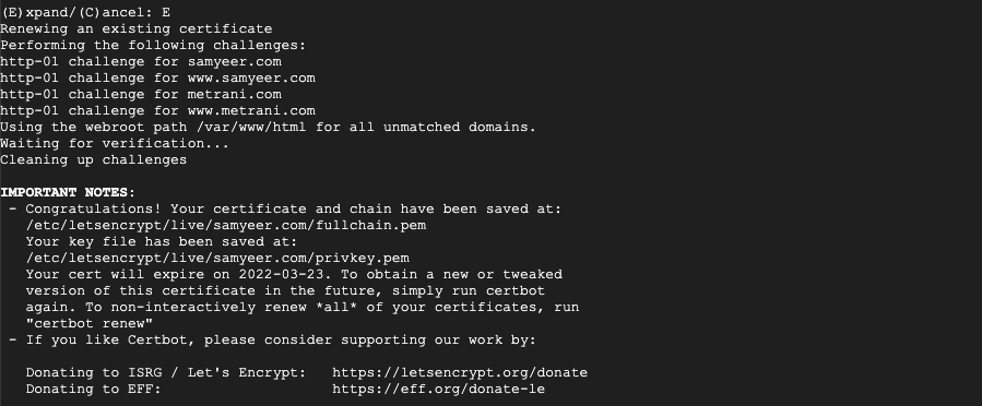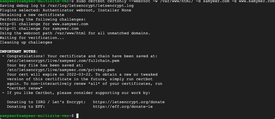sudo certbot certonly --webroot -w /var/www/html/ -d your-domain-name -d www.your-domain-name