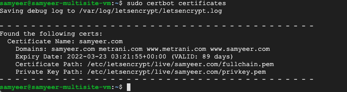 The ssl certificates that you just setup are valid for 90 days. You need to setup to renew them every 90 days. Setting up crontab will automatically check for a certificate due for renewal and renew it.